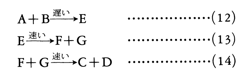 すなわち反応物の一方の濃度にだけ依存する場合がある。これらは二分子反応,一分子反応と呼ばれる。反応速度は律速段階によって決まるから,二分子反応と一分子反応の区別は律速段階がどのようなものであるかを決めるのに役立つ。