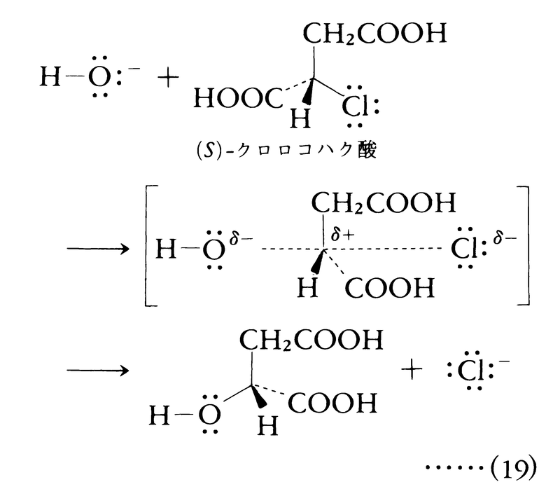 式(10)をみても,反応が置換反応の一種であることがわかるだけで,転位がどの段階で,どのような仕組みで起こったかを知ることはできない。一般に化学反応式は反応物と生成物の化学量論的関係を示すだけで,反応の詳細な経過を示してはいない。一般の化学反応と同様,有機化学反応も1段階ではなく多段階で進行する。たとえば反応