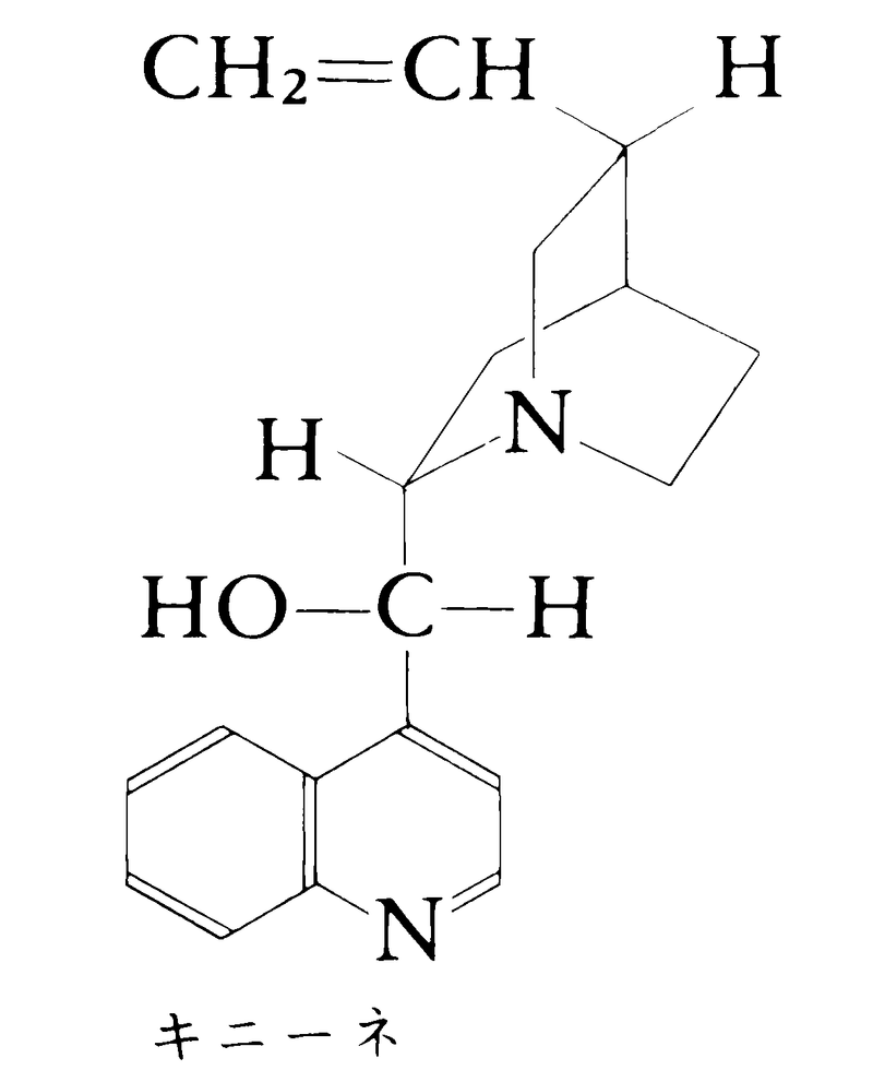 しかしこれらは天然物としては比較的簡単なアルカロイドのなかでも飛び抜けて簡単なものであった。A.W.vonホフマンの弟子であったW.H.パーキンが一獲千金を夢みたキニーネの合成が実現するのは彼の没後の1944年のことであった。困難は二つの点にあった。一つはやはり構造決定における困難であった。未知の骨格をもつ物質を相手にしたとき,有機化学者はしばしばその構造決定に苦汁を飲まされた。有名な例はステロイド骨格の決定にまつわる苦心談である。1930年代の初めまでにA.ウィンダウス,H.O.ウィーラントはそれぞれコレステロール,コール酸の構造をほぼ明らかにしたことを確信していた。これらの業績に対して1927年と28年にそれぞれノーベル化学賞が贈られた。しかし,ほどなくX線結晶解析の手法が有機化学に導入されると,ウィンダウスやウィーラントの構造には矛盾があることが明らかとなり,その構造は現在のものに修正された。