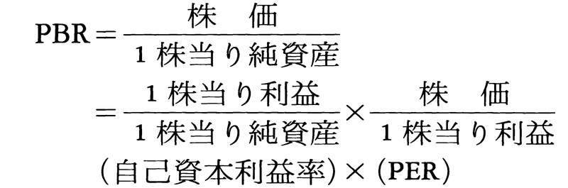 PBRともいう。利回り,株価収益率(PER)が利益というフローに着目した株価水準を判断する指標であるのに対し,会社の資産価値に着目した投資尺度として用いられる。株式は利潤証券としての価値と同時に,物的証券としての価値をも有し,インフレ進行や国際通貨不安,低成長経済下でのTOB(株式公開買付け)流行などが株価純資産倍率(PBR)に対する評価を高めている。1株当り純資産は株主資本(自己資本)を発行済株式数で除して求めるが,株価がこの1株当り純資産の何倍に評価されているかを示す指標がPBRにほかならない(単位は〈倍〉)。計算式は次のとおりで,株価収益率とも関係があることがわかる。