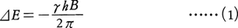 ここでγは核の磁石としての感度を表す磁気回転比で核の種類によって一定,hはプランク定数である。⊿Eはきわめて小さく,0.002J/molのオーダーにすぎない。通常の条件すなわち熱平衡条件ではα状態にある核の数Nαとβ状態にある核の数Nβの比は