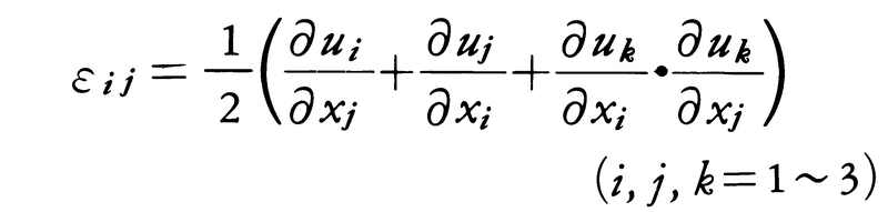 と書ける。これをアルマンシーのひずみテンソルという。それぞれの式の右辺の二次項は微小変形の場合一次項に比べ十分小さくなるので,これを省略すると両者は一致し,微小ひずみ,