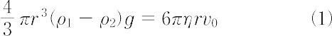 となる.ρ1 および ρ2 はそれぞれ粒子および媒質の密度で,gは重力の加速度である.この関係から,v0 とηを知ればrが求められ,rと v0 とがわかればηが求められる.ρ1 と ρ2 との差が小さい場合や,rが小さいときには v0 は小となり測定困難となるが,この場合でも遠心力によって強制的に沈降させることができる.遠心機の回転軸から粒子までの距離をx,回転の角速度をωとすると,遠心力による加速度は ω2xで与えられるから,式(1)のgのかわりにこれを用い,