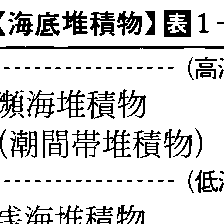 (3)堆積機構による分類 おもなものは3通りある。第1は陸源砕屑物や浮遊生物(プランクトン)の死骸が一粒また一粒と遅いが連続的に沈積する正常堆積物である。第2は浅海底に一度堆積した物質が,海底地震・海底地すべりなどによって起きる混濁流で,より深い海底に急激に,時には厚さ数mも瞬間的に堆積する異常堆積物(タービダイト)である。第3は南極や北極の周縁海域で生じた流氷が暖流域に流され,溶解し,流氷中に含まれた大小さまざまの岩片・土砂が海底に沈積する場合で,氷河性海底堆積物と呼ばれる。