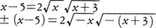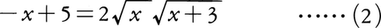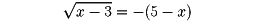 と同値であり、解を実数に限れば(無理方程式では一般にこの立場をとる)、平方根の定義からx≧3,5-x≧0したがってx≦5だから、解は5以下でなければならない。
