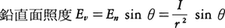 (3)鉛直面照度 壁のように鉛直な面の照度で,Enの水平方向の成分である。