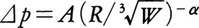 ここにAは爆発物質による定数,αは爆発の種類によらない定数(通常1.6に近い値をとる)である。かっこ内の比はスケール化距離と呼ばれる。これから,同一物質からなる大きさの異なる二つの爆発物が,同一環境で爆発したとき,スケール化距離が同じならば,爆風の影響も類似するという法則が導かれ,スケール化則と呼ばれる。このとき爆源からの距離が10倍になることは爆発物の量を1000分の1とすることに相当することが容易にわかる。