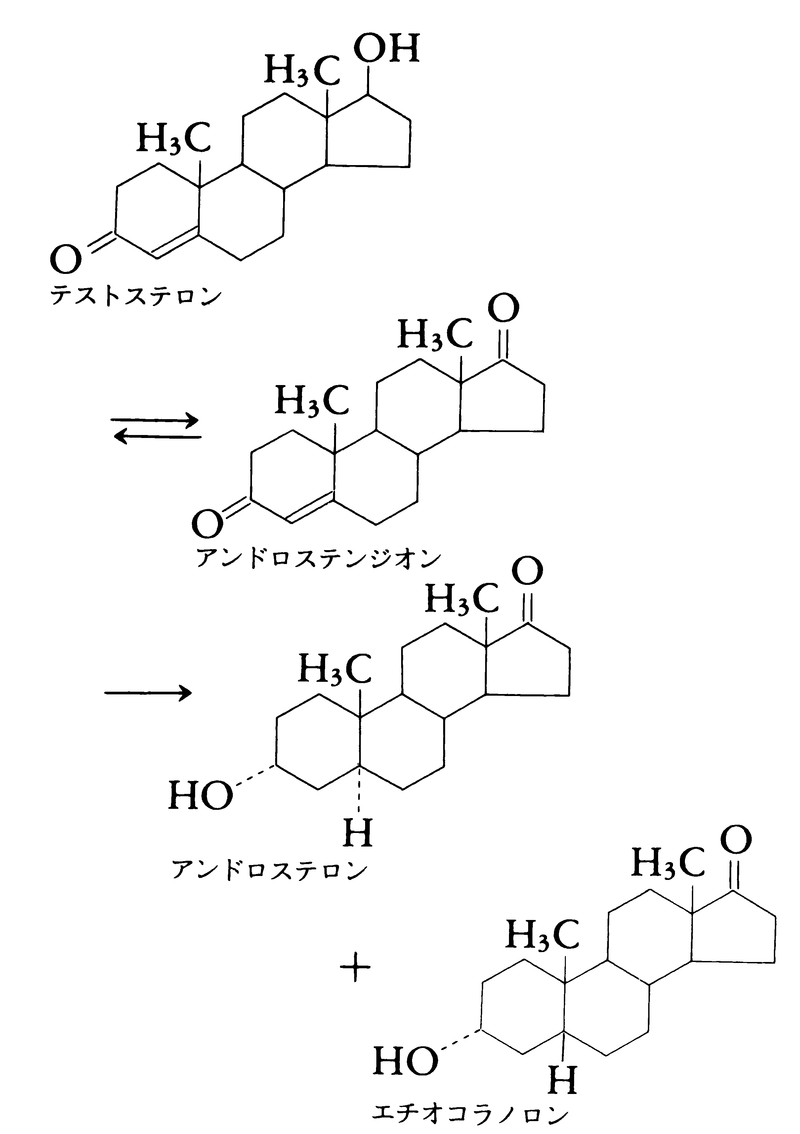 天然のホルモンであるテストステロンは体内で代謝されやすく,そのため活性の低下も早いので,医療用としては合成ホルモンである17α-メチルテストステロン(経口投与)やプロピオン酸テストステロン(注射)の形で用いられる。