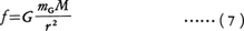 の左辺に現れ,慣性の大小を表すものであって重力とは直接の関係がない(αは加速度,fは力)。(5)式を地球表面近くにおける物体の落下運動にあてはめてみよう。右辺の力fは,物体が万有引力によって地球に引かれるために生ずる重力である。地球の全質量Mは中心に集中したと考えてよい。そうすると質量mGの物体との間には,