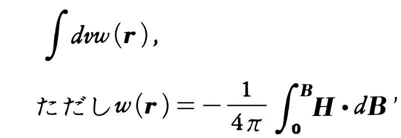 で表される(ガウス単位系)。w(r)は,単位体積当りの磁気エネルギー,すなわち磁気エネルギー密度ということになる。