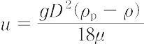 となる.ここで,ρp,ρ,μ,gは,それぞれ粒子の密度,流体の密度,流体の粘度,および重力加速度である.粒子が遠心力の作用を受けて運動するとき,慣性を無視できると仮定できれば,同様に近似的に終端速度を定義できる.