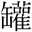 [補説]「罐」は本来「水を汲むつるべ」をさしたが、今は「缶」によって代用する。「缶」は「フ」が本来の音で、「腹のふくれた水がめ、ほとぎ」の意。1は英語canまたはオランダ語kanの音訳字。3・4は「鑵」と通用。
