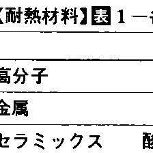 (1)高分子材料 高分子系材料(有機化合物)は軽さ,加工性という面から優れた材料であるが,物質の化学結合力の弱さにより,分解温度が低く,酸化を受けやすい。したがって本質的に500℃くらいが限界となる(耐熱性樹脂,耐熱性繊維)。