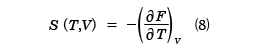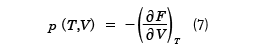 と計算することができる。FがT,Vの関数として与えられているとき、(7)式はp、T、Vの間の関係式で、物体の状態方程式を与える。ここで、( )Tは温度Tが一定で、もう一つの変数で偏微分することを表している。また、エントロピーSはdV=0と置いて、