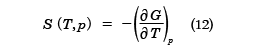 が得られる。(11)式は(7)式と同等な状態方程式であり、(12)式は(8)式と同じSを与える関係式であるが、独立変数がT,VからT,pにかわっている。