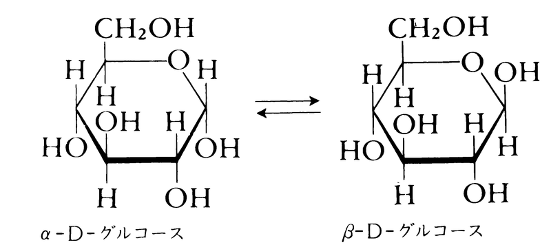 ブドウ糖は,六つの炭素をもつ六炭糖で,水溶液中ではα-D-グルコースとβ-D-グルコースが3:2の割合で平衡に達する。
