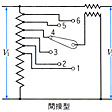 はこれを説明するもので、タップ3から4に切り替える場合は、(1)Aスイッチを開く、(2)A3からA4にタップを移動する、(3)Aスイッチを閉じる、(4)Bスイッチを開く、(5)B3からB4にタップを移動する、(6)Bスイッチを閉じる、の順で操作を行う。この場合(3)の状態ではタップ3と4のコイルが限流リアクトルを通して短絡状態になるが、限流リアクトルはこのとき大きな短絡電流を流さないためのものである。はリアクトル式とよばれるもので、このほかに抵抗式がある。