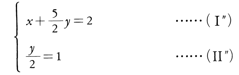 と同値である。2×(Ⅱ″)と(Ⅰ″)-\(\frac{5}{2}\)×(2×(Ⅱ″))を取れば,
