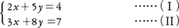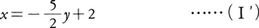 3×(Ⅰ)-2×(Ⅱ)を作ると-y=-2。したがってy=2である。これを(Ⅰ)に代入して,x=-3となる。この方法を加減法という。