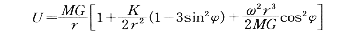 となる。Mは地球の全質量,K=〔C-(A+B)/2〕/M, A, B, Cは茂x, y, zについての慣性モーメント。このUを地球半径方向について微分すれば重力を得る。重力場は地球内部の物質分布により決定されている量であるから,逆に重力場を知ることにより地球内部の物質分布を知りうる。