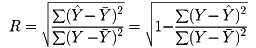 によって与えられるYと、観測値Yとの間の相関係数