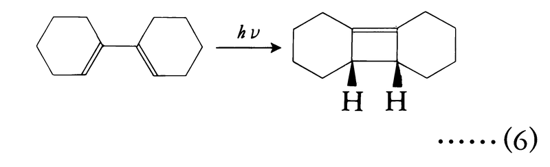 式(6)に示すように,共役ジエンが光で閉環してシクロブテン環を形成する反応も知られている。この反応も立体選択的に進行するが,熱では起こらない。これらの事実もウッドワード=ホフマン則で説明されている。