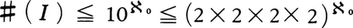 である。なぜならば,{0,1}nの元fに対し,小数0.f(1)f(2)……f(n)……(小数点以下n位の数字がf(n))を対応させれば,{0,1}nとI={x∈R|0≦x<1}の部分集合で,小数展開で表れる数字が0か1に限るもの全体との1対1対応が得られるから,