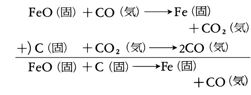FeO(固)+CO(気)─→Fe(固)+CO2(気)